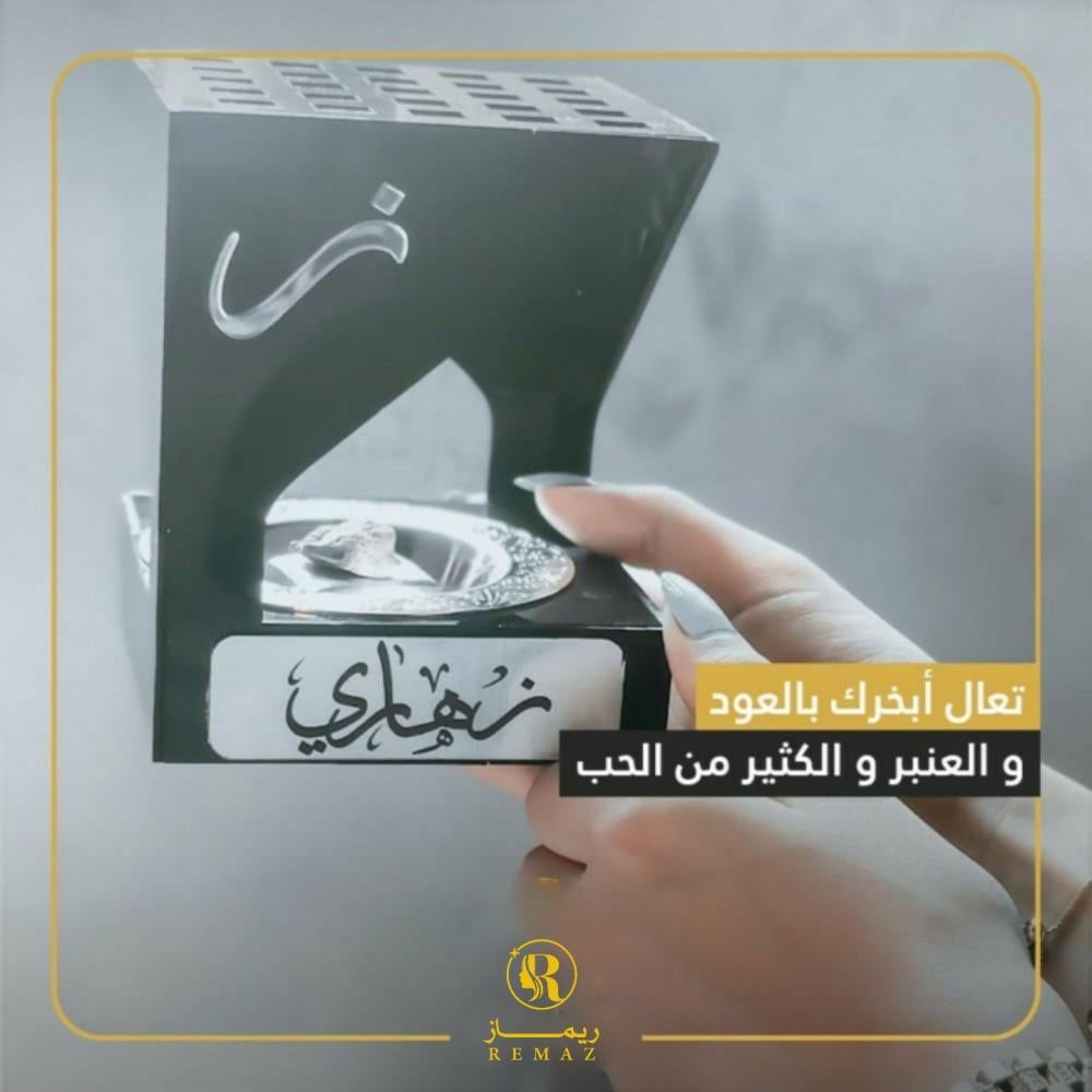 مبخرة بالاسم فاخرة ومصنوعة من الأكريليك باحترافية ومناسبة لجميع الأذواق مع تصميم حرف أو اسم حسب الطلب. من ريماز أجمل هدايا ومباخر بالاسم